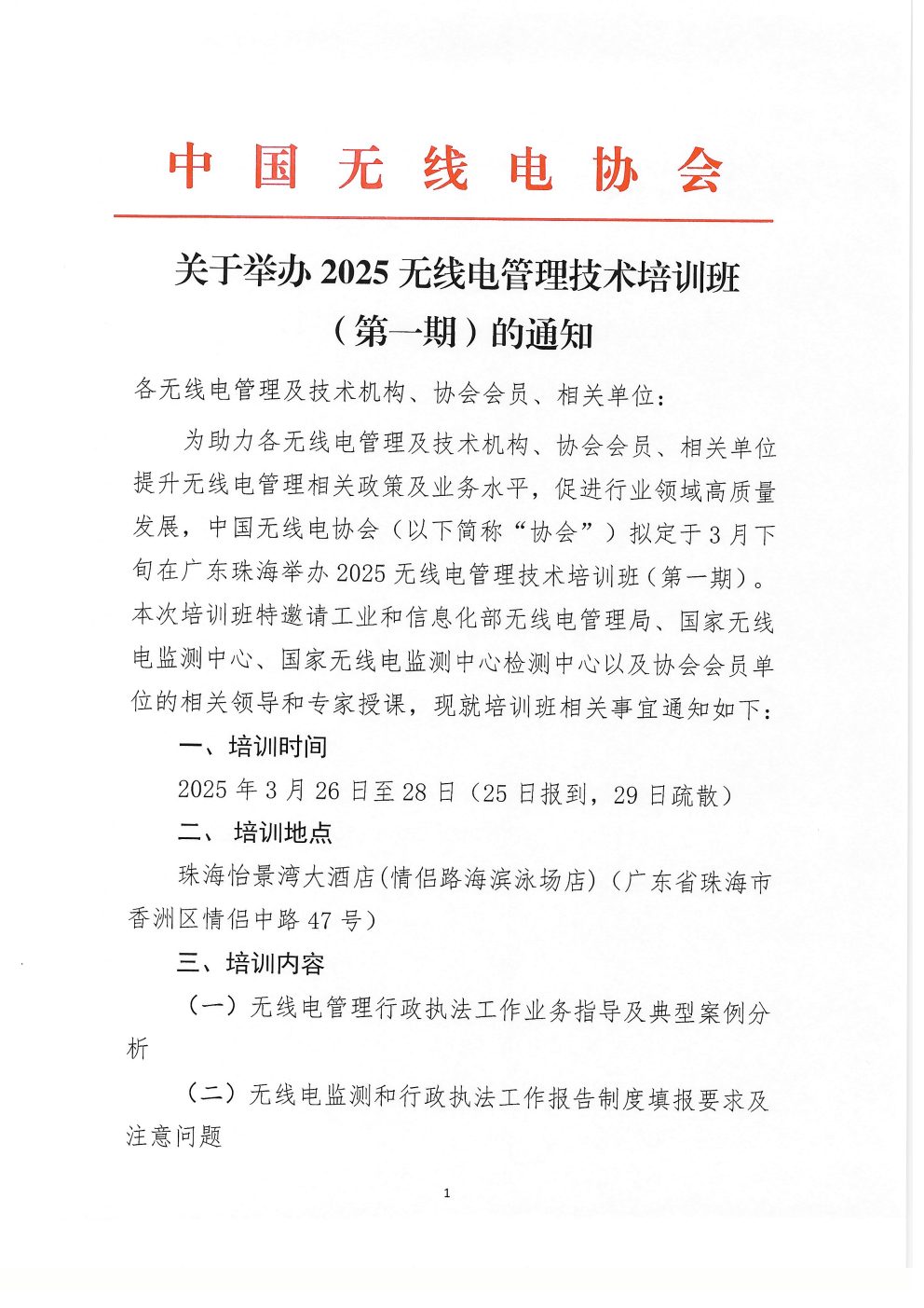 關于舉辦2025無線電管理技術培訓班(第一期)的通知