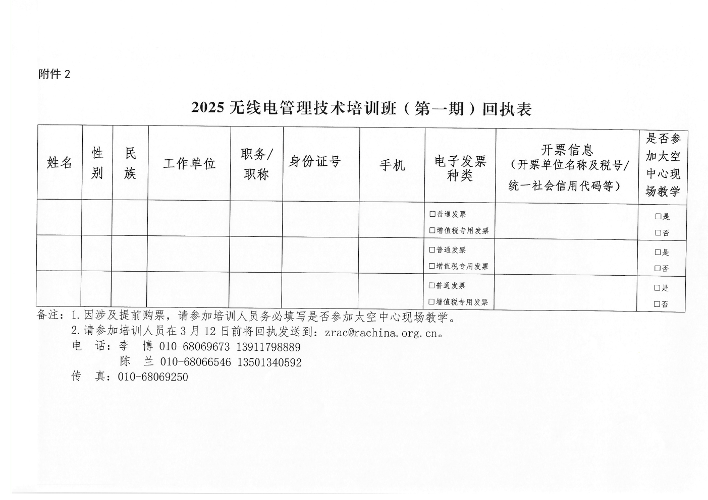 附件2:2025無線電管理技術培訓班(第一期)回執表.docx