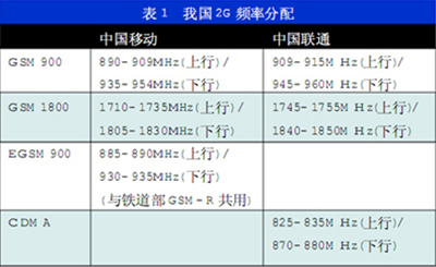 無線電頻率規劃是根據無線電頻率劃分或分配的規定,將某一頻段內的某項業務的頻率在地域或時間上的使用預先做出了統籌安排,以實現頻率資源的有效利用并避免頻率間的有害干擾。在無線電管理中,無線電頻率規劃是一個不可缺少的環節。國際上的頻率規劃是通過召開有權力的世界(或區域)無線電通信大會制定的;我國的頻率規劃由國家或地方無線電管理機構負責制定。無線電頻率規劃分為分配規劃、指配規劃及介于二者之間的規劃。分配規劃是在頻率劃分的基礎上按照國家、區域和部門對無線電業務的需求,做進一步的頻率安排,為頻率分配提供依據。指配規劃是根據頻率使用者的服務覆蓋要求、臺站布局、設備特性等情況制定的具體頻率安排計劃,為頻率指配提供依據。另一類頻率規劃則介于分配規劃和指配規劃之間,它兼有分配規劃和指配規劃的某些特點。無線電頻率劃分即為規定某一無線電頻段供一種或多種地面或空間無線電通信業務,或射電天文業務在規定的條件下使用。頻率劃分是無線電頻率管理的基礎和依據,頻率的使用必須嚴格遵守頻率劃分表的規定,不能違反。國際頻率劃分表將全球分為三個區域,第一區包括歐洲、非洲和部分亞洲國家;第二區包括南、北美洲;第三區包括大部分亞洲國家和大洋洲,我國屬于第三區。我國頻率劃分以國際頻率劃分表第三區頻率劃分為依據,結合我國實際情況,制定了我國的無線電頻率劃分規定。國際和國內的頻率劃分通常在一段時間內穩定不變,經過幾年或十幾年的實施后,根據無線電技術和無線電業務發展的需要,集中進行調整和修訂。我國新版的《中華人民共和國無線電頻率劃分規定》于2006年10月16日起公布實施。我國為部分通信運營商分配的頻率如下: 2G頻率分配給中國移動和中國聯通,如表1。