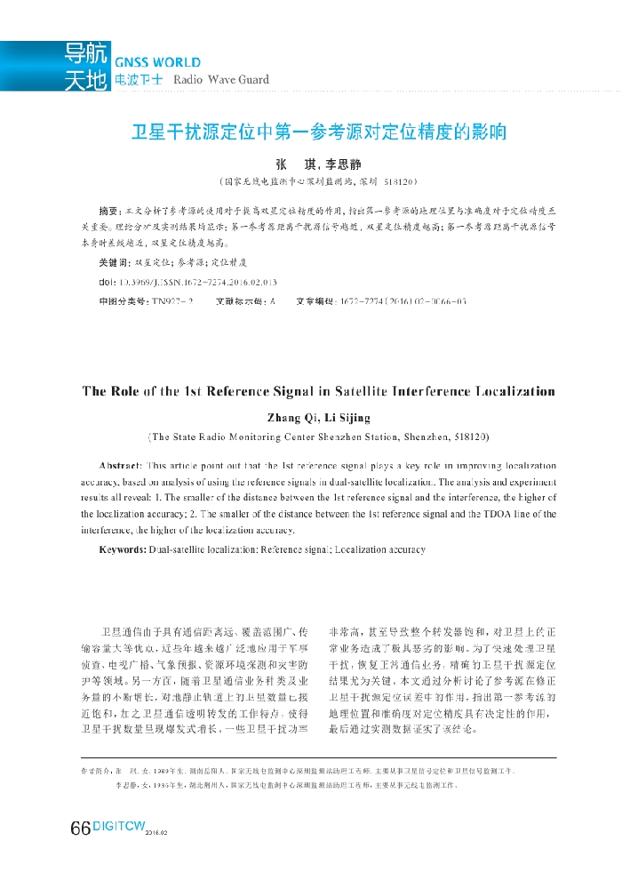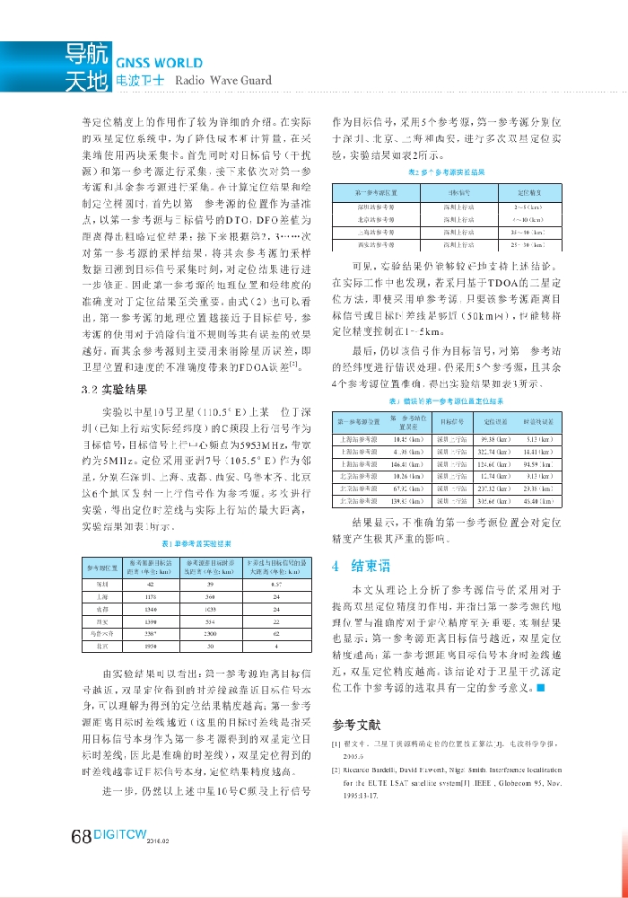 衛(wèi)星干擾源定位中第一參考源對定位精度的影響