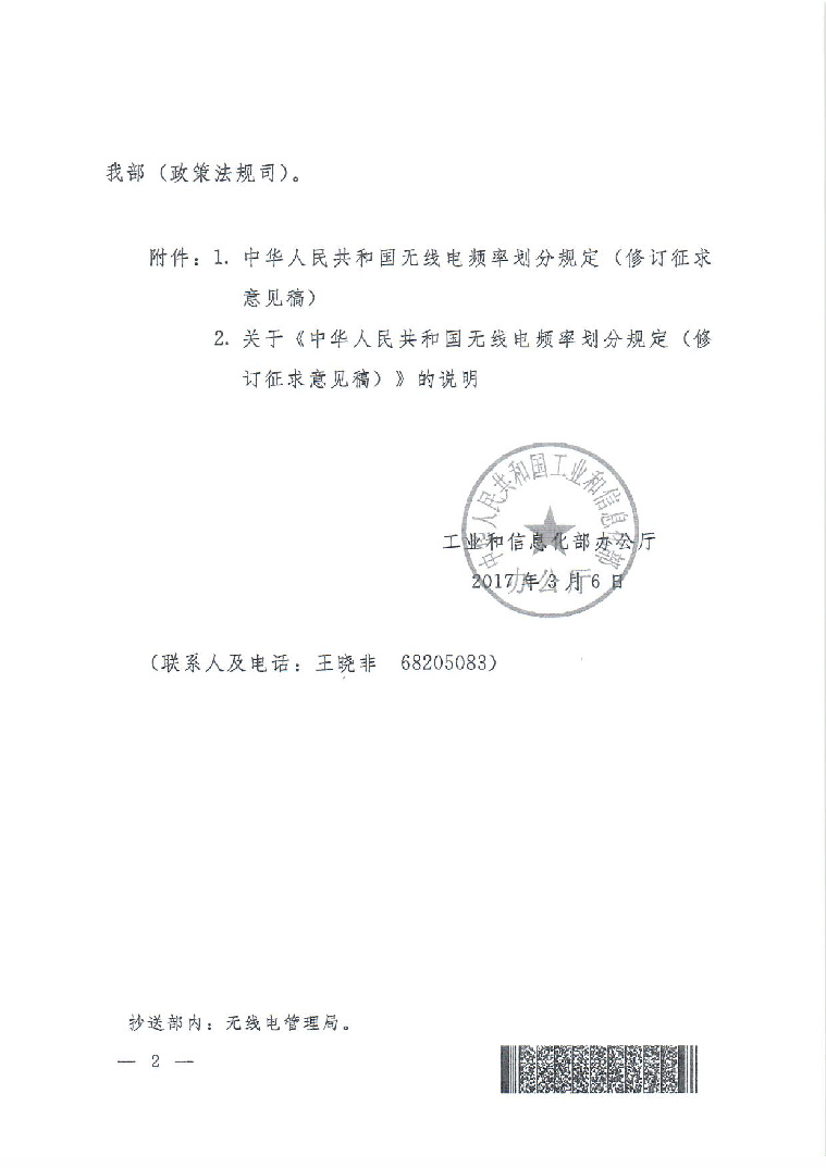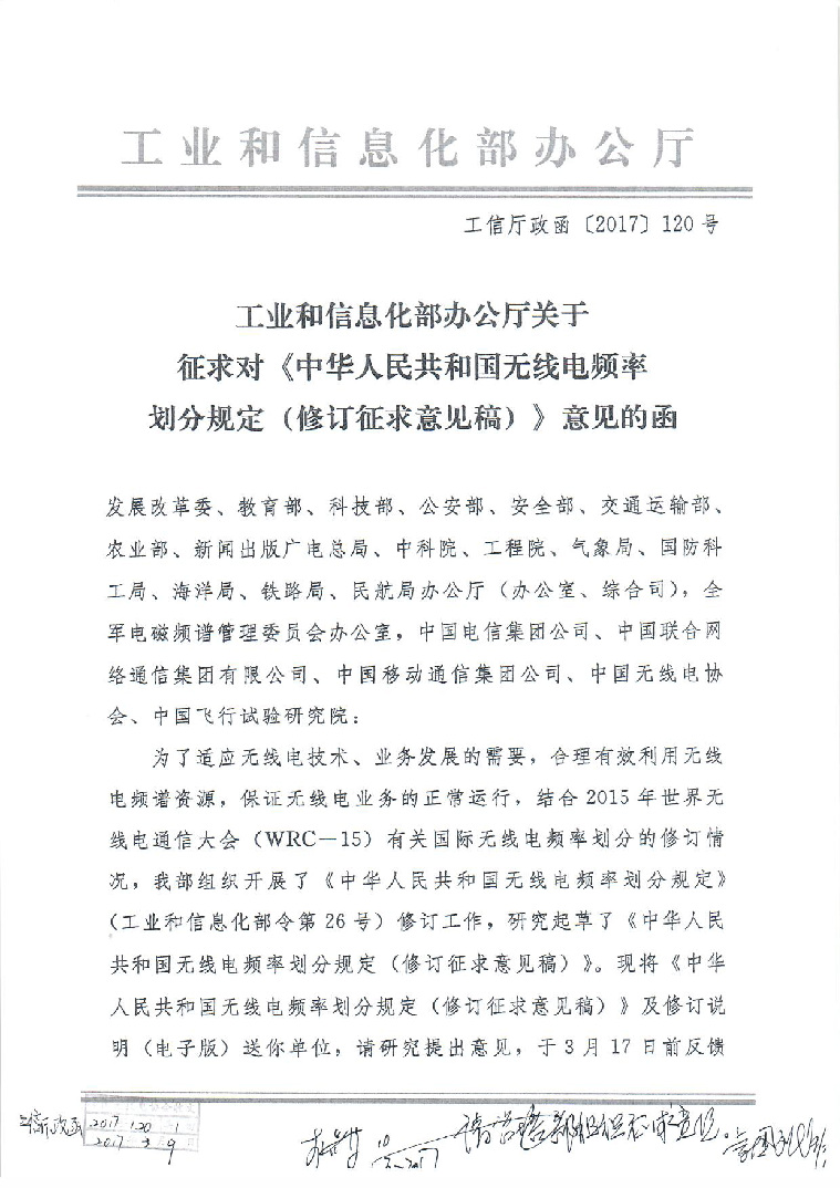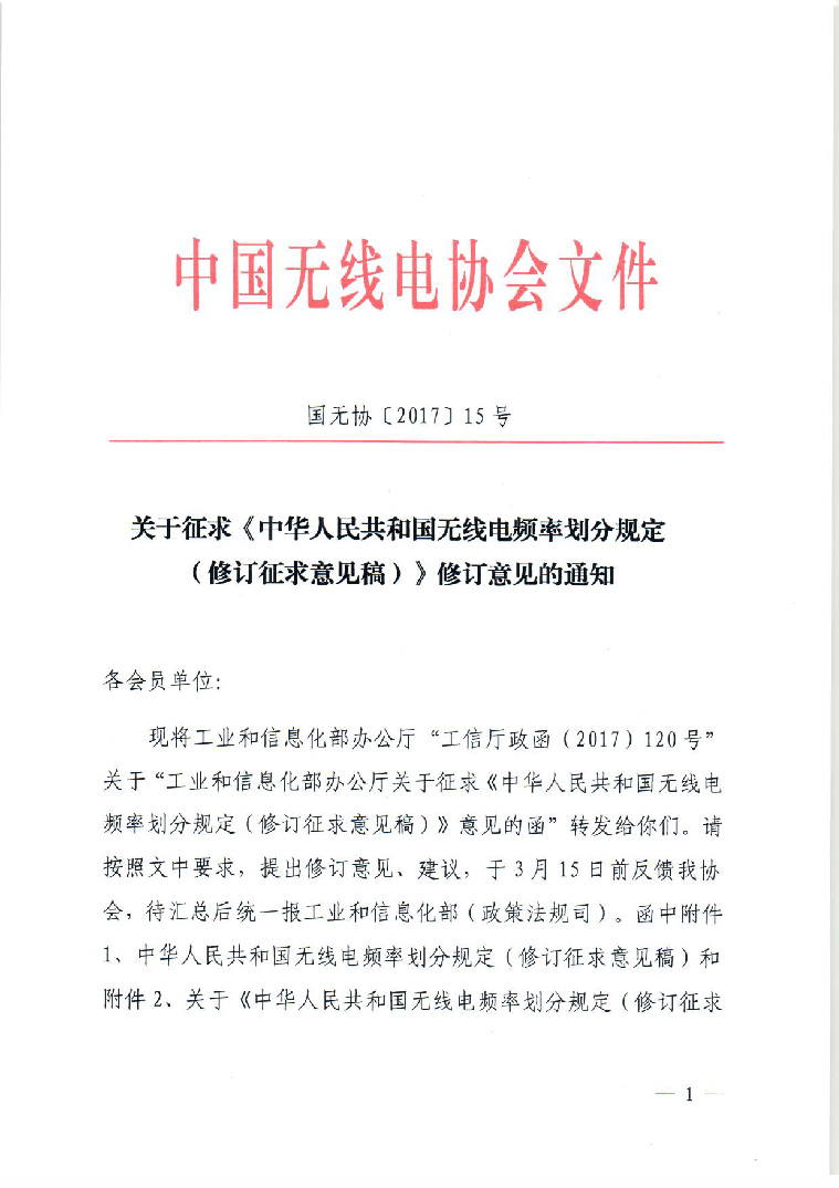關于征求《中華人民共和國無線電頻率劃分規(guī)定(修訂征求意見稿)》修訂意見的通知