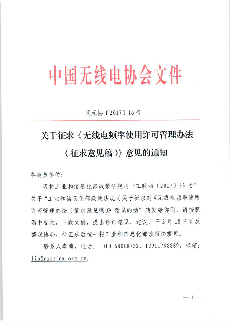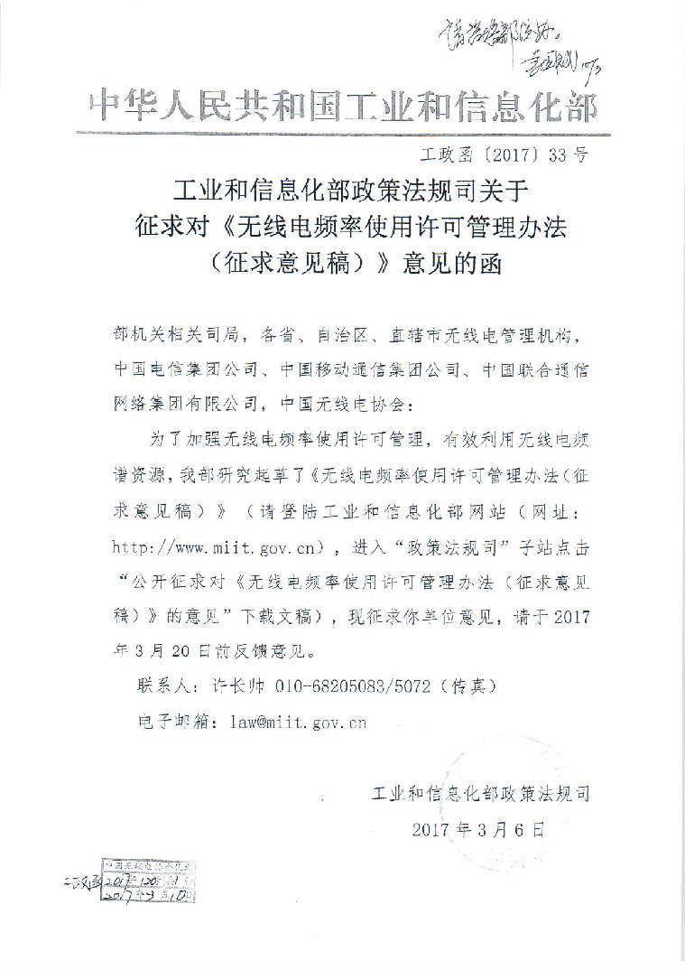 關于征求《無線電頻率使用許可管理辦法(征求意見稿)》意見的通知
