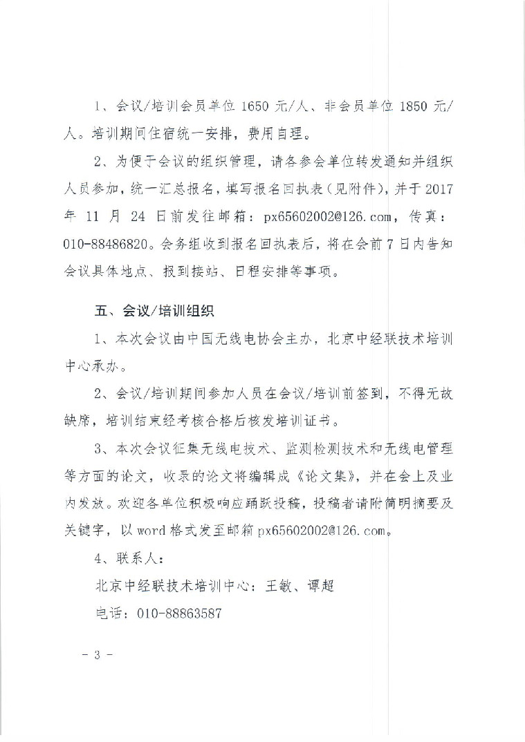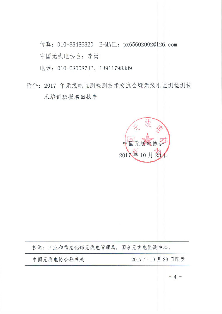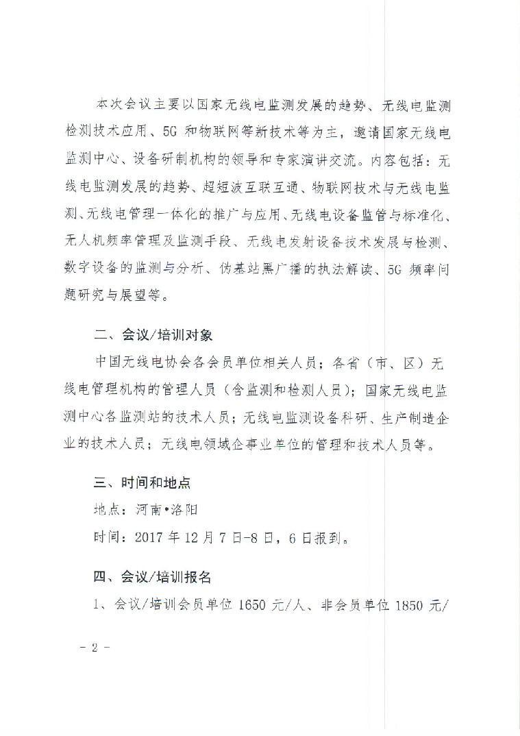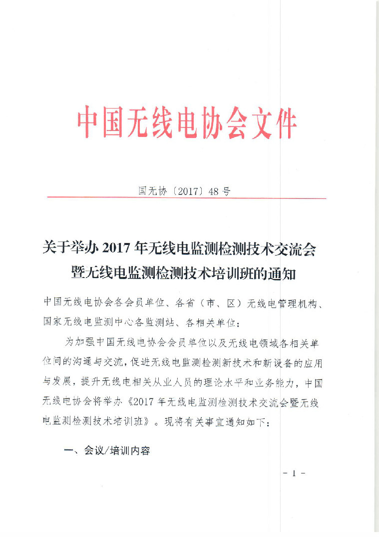關于舉辦2017年無線電監測檢測技術交流會暨無線電監測檢測技術培訓班的通知