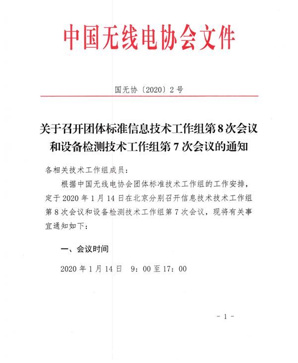 關于召開團體標準信息技術工作組第8次會議和設備檢測技術工作組第7次會議的通知