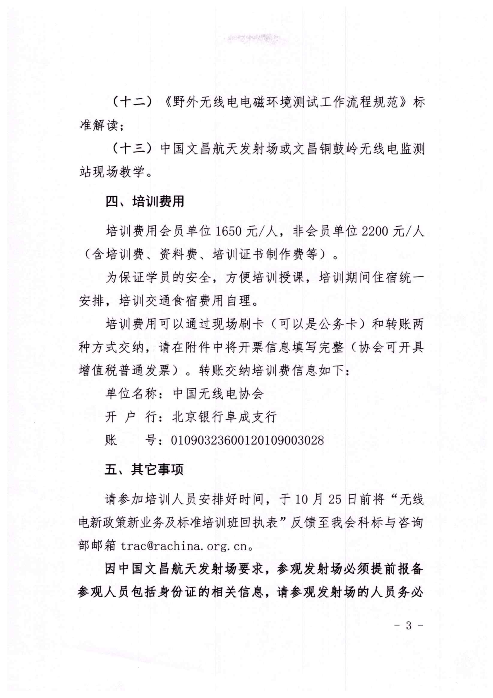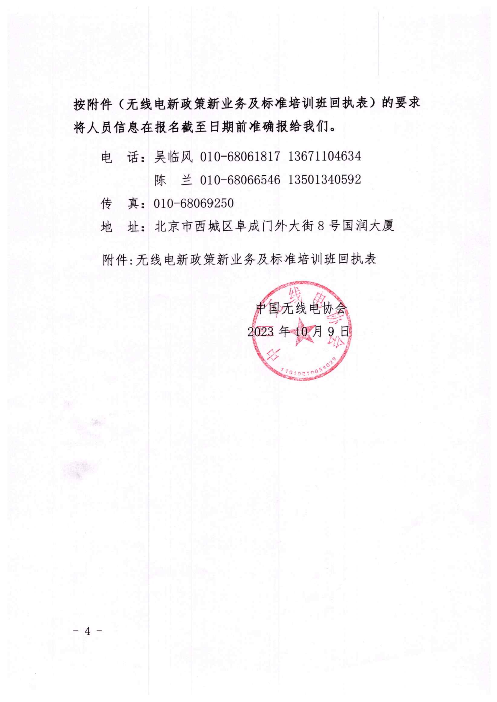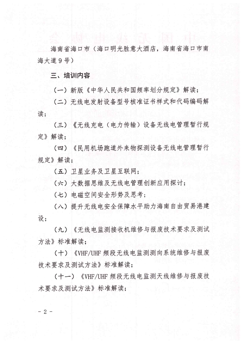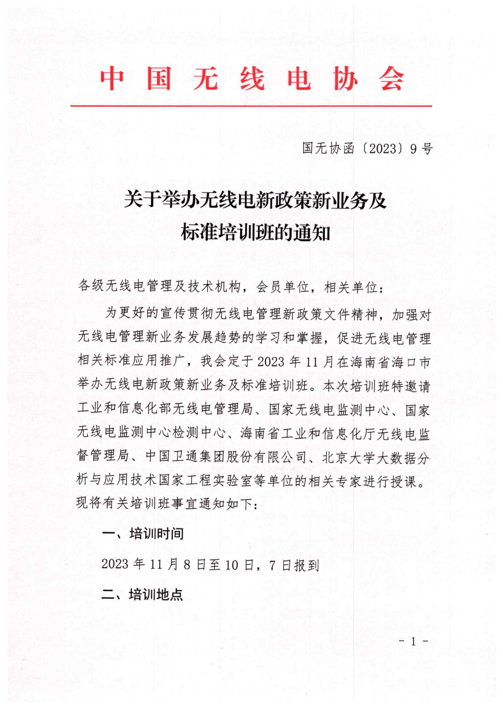 關于舉辦無線電新政策新業務及標準培訓班的通知