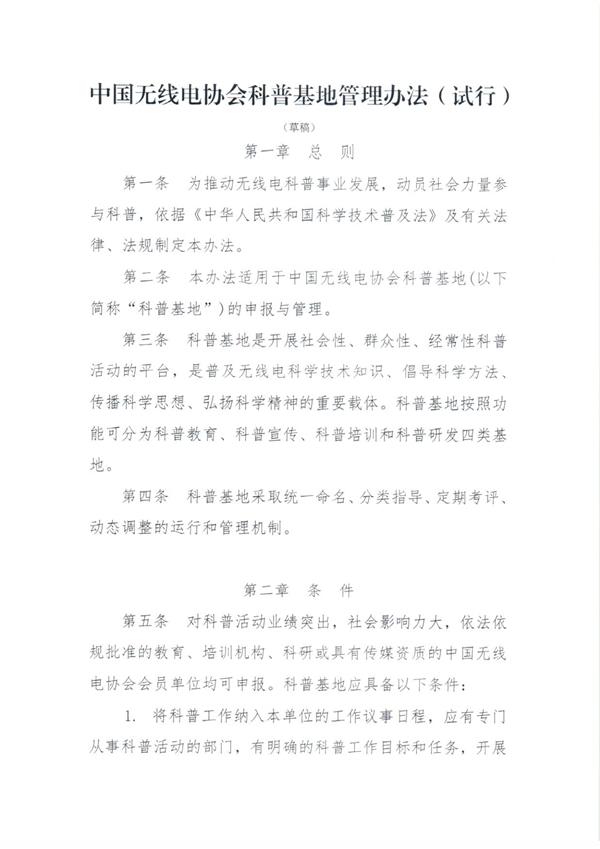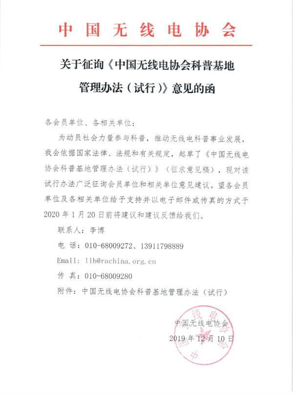 關(guān)于征詢中國無線電協(xié)會科普基地管理辦法意見的函