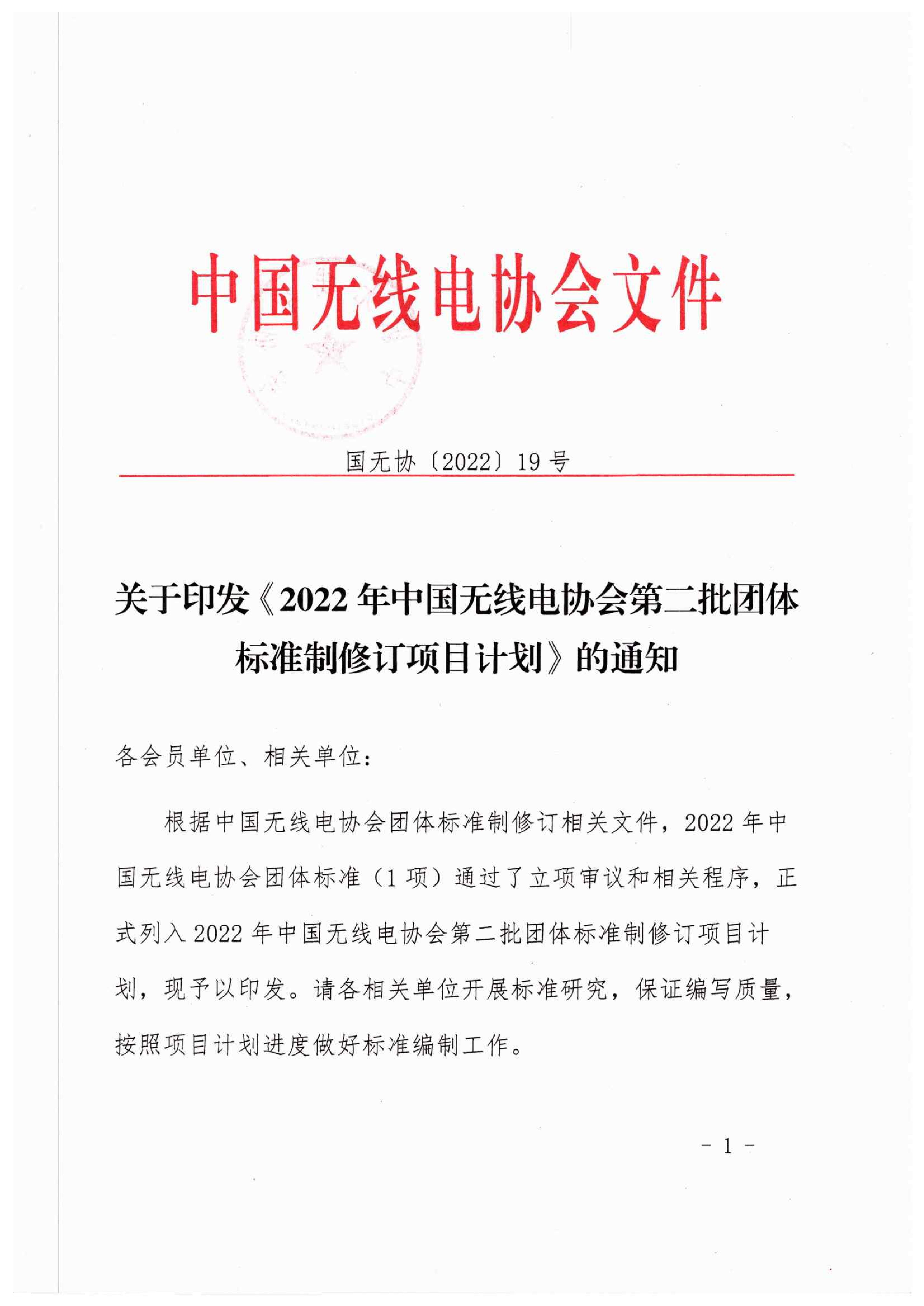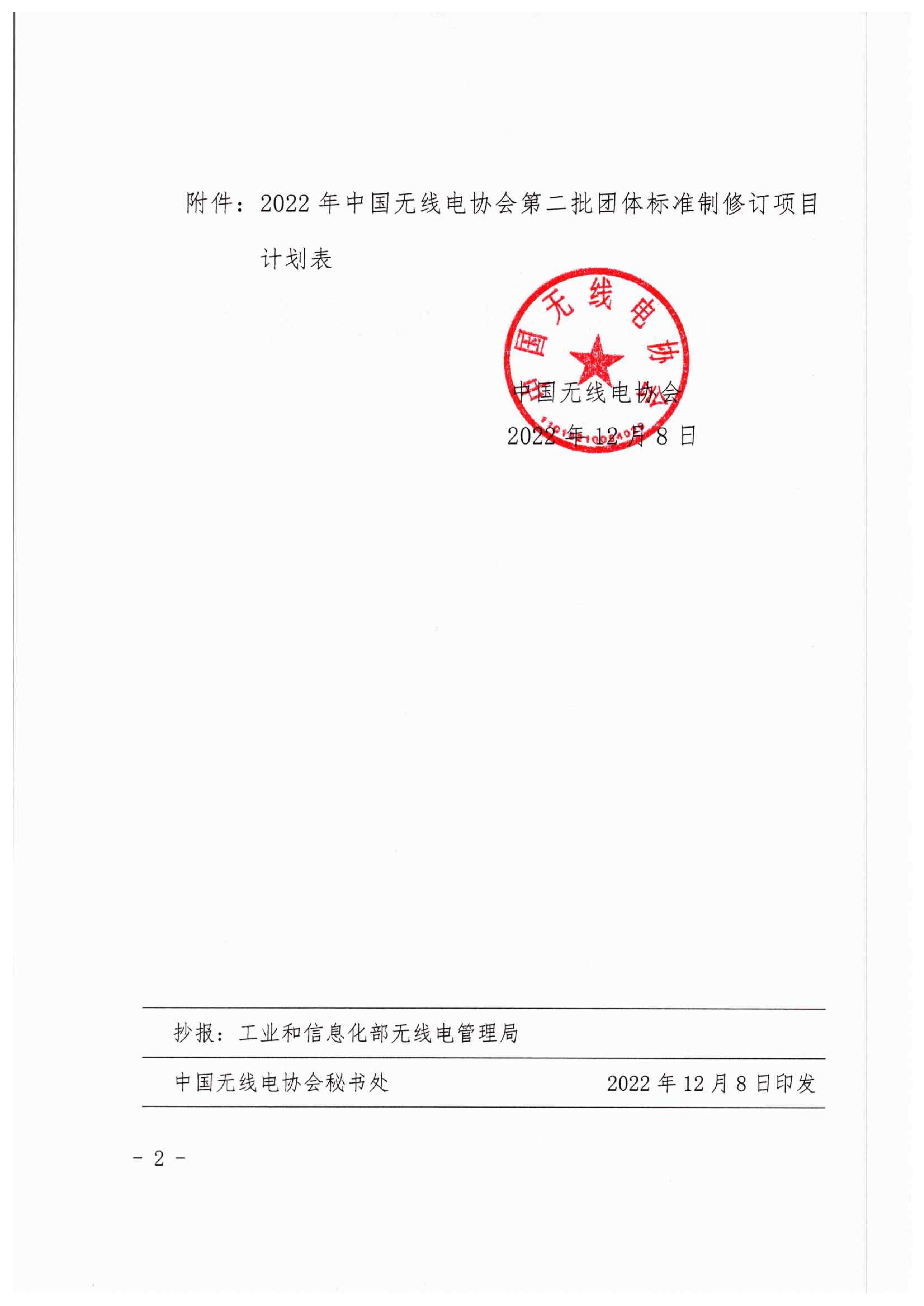 關于印發《2022年中國無線電協會第二批團體標準制修訂項目計劃》的通知
