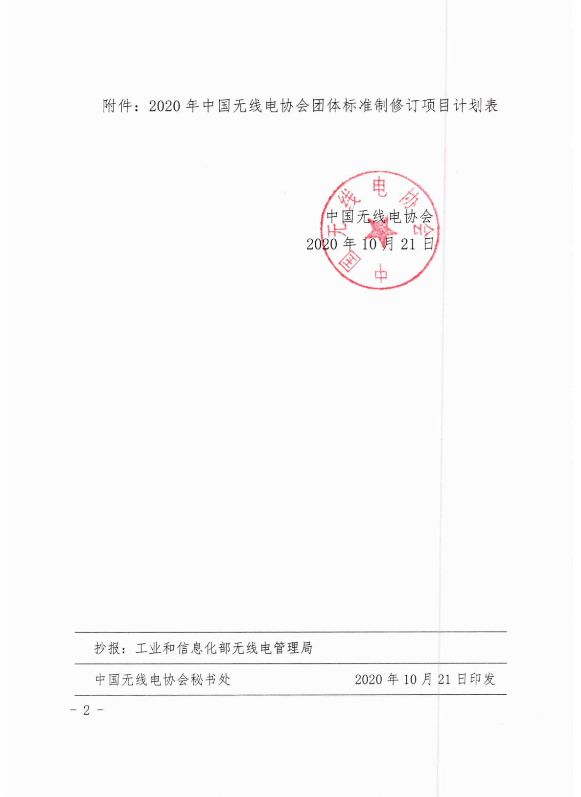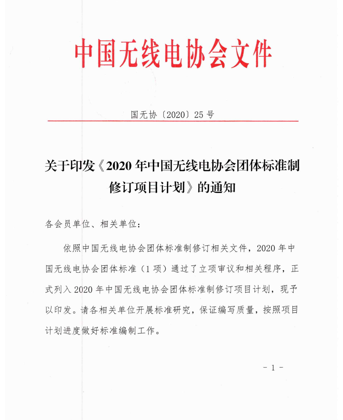關(guān)于印發(fā)《2020年中國(guó)無線電協(xié)會(huì)團(tuán)體標(biāo)準(zhǔn)制修訂項(xiàng)目計(jì)劃》的通知