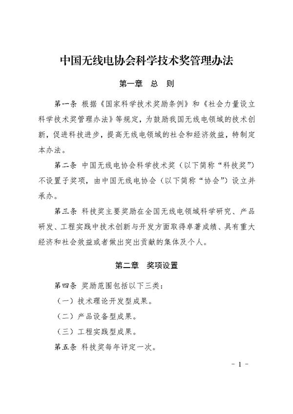 中國無線電協(xié)會科學(xué)技術(shù)獎管理辦法