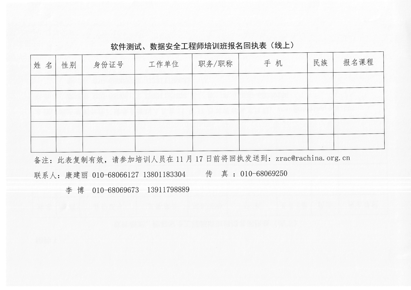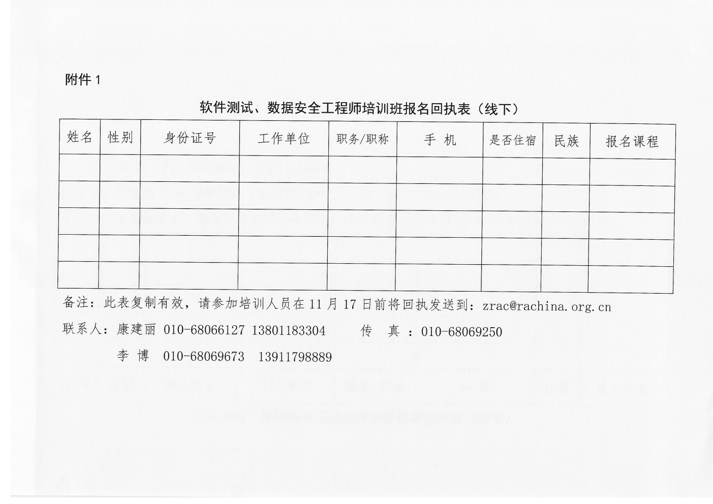 附件1:軟件測試、數據安全、信息安全工程師培訓通知回執.docx