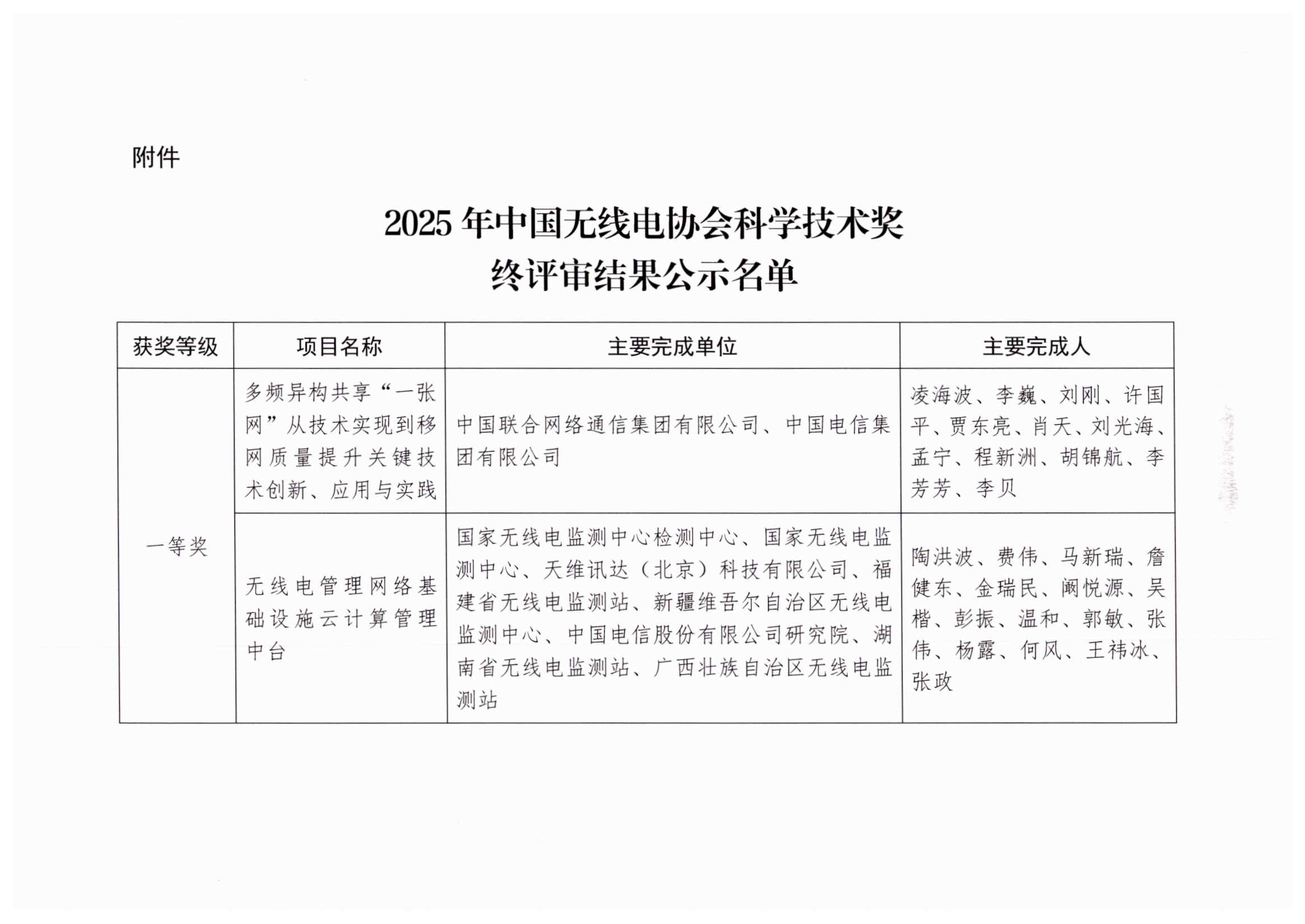 2025年中國無線電協(xié)會科學(xué)技術(shù)獎終評審結(jié)果公示