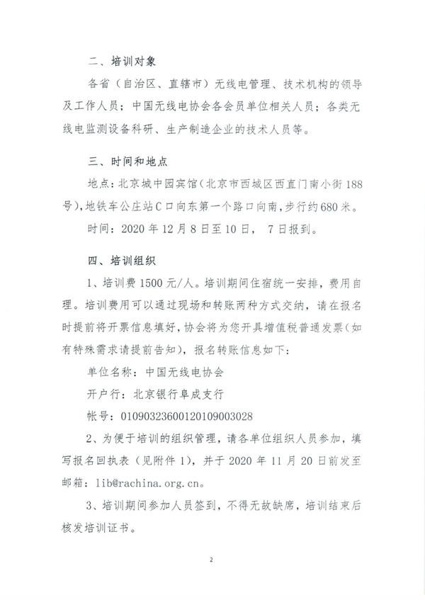 關于舉辦2020年無線電管理監測業務培訓班的通知