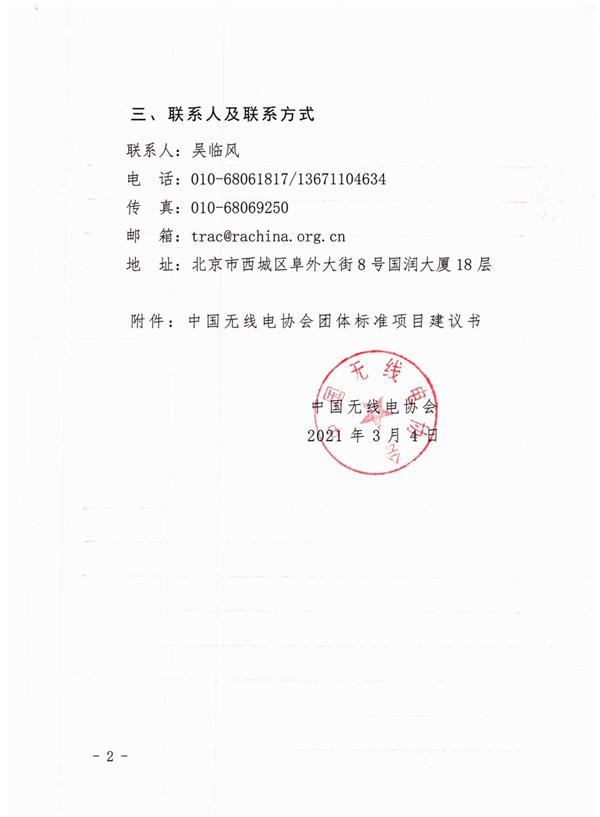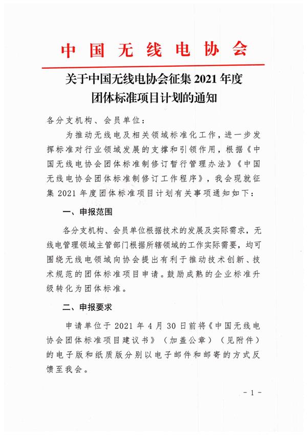 關于中國無線電協會征集2021年度團體標準項目計劃的通知