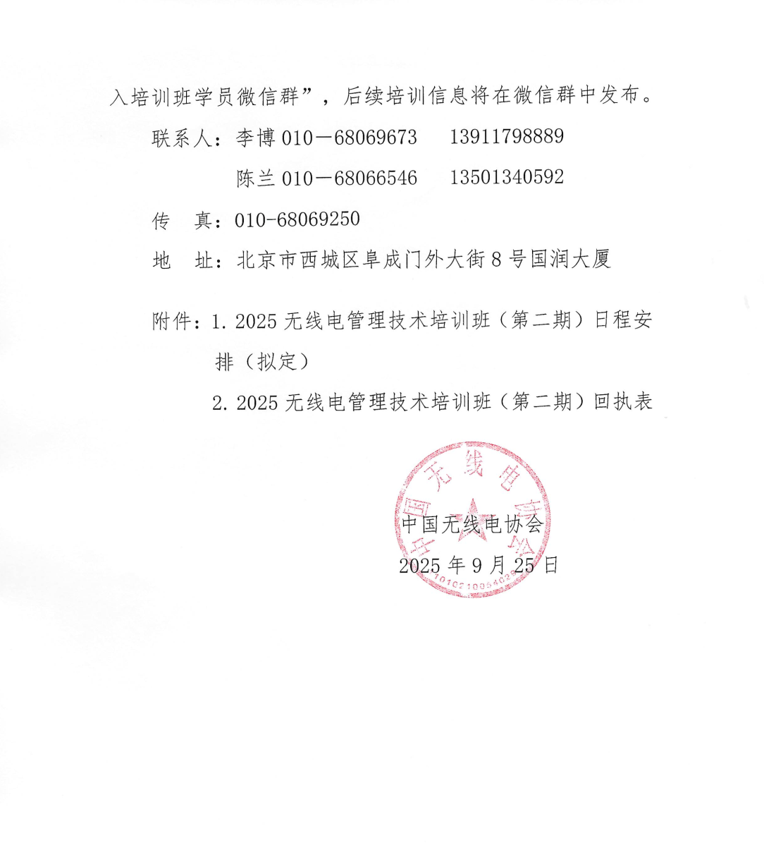 關于舉辦2025無線電管理技術培訓班(第二期)的通知