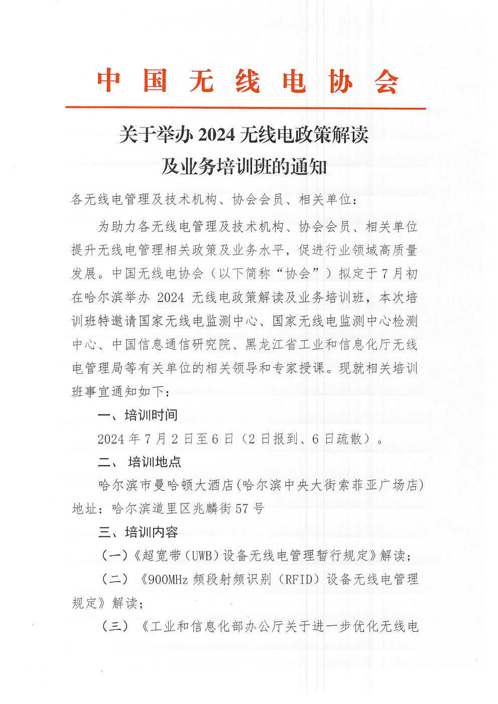 關于舉辦2024無線電政策解讀及業務培訓班的通知
