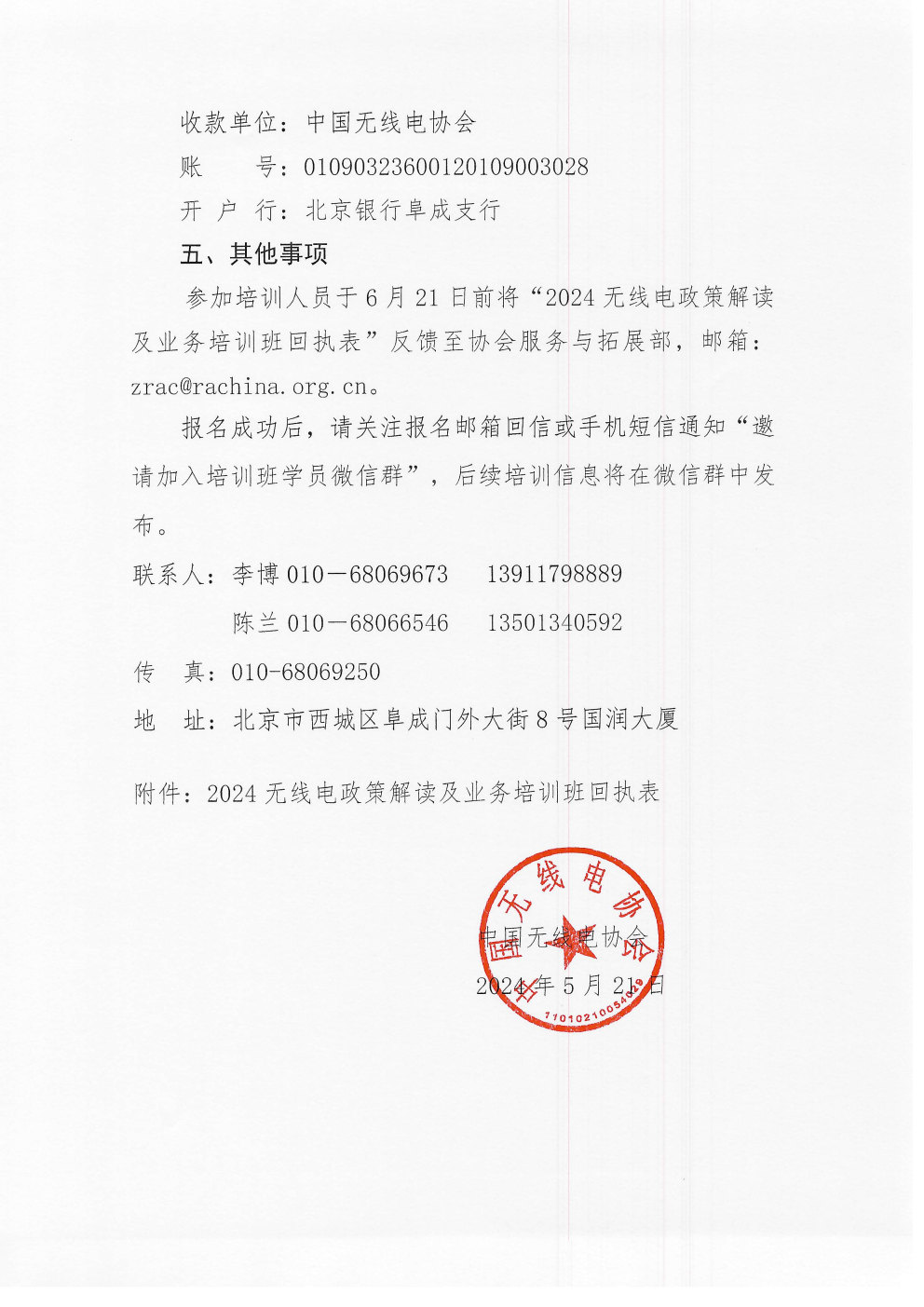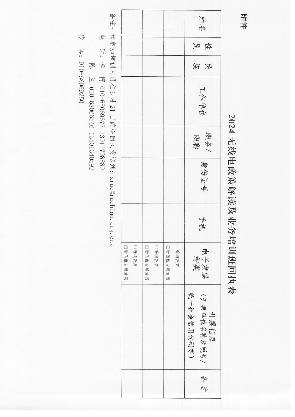 附件:2024無線電政策解讀及業務培訓班回執表.docx
